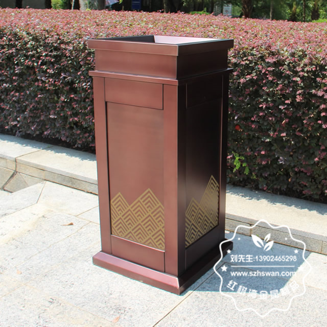 湖北室内电梯口电镀香槟金果皮箱是一种采用钢制材质制作而成的专门盛放垃圾、废弃物的容器,根据摆放的场所,有户外钢制垃圾桶、室内钢制垃圾桶、铁皮垃圾桶,经酸洗磷化高温烤漆工艺的钢制垃圾桶户外摆放依然耐用。根据款式有单桶和分类桶区别,钢制分类垃圾桶包括可回收、不可回收和有毒物质等分类垃圾的收集。从 2003 年国家出台了《生活垃圾规则条例》。根据国家制定的统一标志,生活垃圾被重新划分为四类,它们分别是可回收垃圾、不可回收垃圾,有害垃圾和其他垃圾。