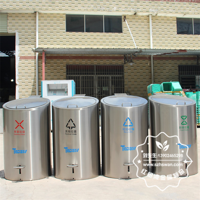 湖北户外脚踏升降地埋式不锈钢分类垃圾桶是一种采用钢制材质制作而成的专门盛放垃圾、废弃物的容器,根据摆放的场所,有户外钢制垃圾桶、室内钢制垃圾桶、铁皮垃圾桶,经酸洗磷化高温烤漆工艺的钢制垃圾桶户外摆放依然耐用。根据款式有单桶和分类桶区别,钢制分类垃圾桶包括可回收、不可回收和有毒物质等分类垃圾的收集。从 2003 年国家出台了《生活垃圾规则条例》。根据国家制定的统一标志,生活垃圾被重新划分为四类,它们分别是可回收垃圾、不可回收垃圾,有害垃圾和其他垃圾。
