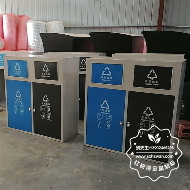 湖北户外方形摇盖式喷塑分类垃圾桶是一种采用钢制材质制作而成的专门盛放垃圾、废弃物的容器,根据摆放的场所,有户外钢制垃圾桶、室内钢制垃圾桶、铁皮垃圾桶,经酸洗磷化高温烤漆工艺的钢制垃圾桶户外摆放依然耐用。根据款式有单桶和分类桶区别,钢制分类垃圾桶包括可回收、不可回收和有毒物质等分类垃圾的收集。从 2003 年国家出台了《生活垃圾规则条例》。根据国家制定的统一标志,生活垃圾被重新划分为四类,它们分别是可回收垃圾、不可回收垃圾,有害垃圾和其他垃圾。