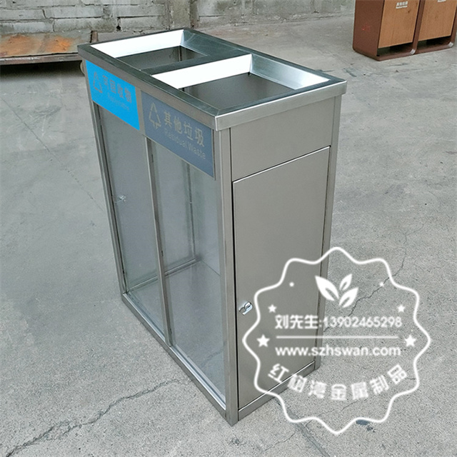 湖北地铁站防爆透明不锈钢分类垃圾桶是一种采用钢制材质制作而成的专门盛放垃圾、废弃物的容器,根据摆放的场所,有户外钢制垃圾桶、室内钢制垃圾桶、铁皮垃圾桶,经酸洗磷化高温烤漆工艺的钢制垃圾桶户外摆放依然耐用。根据款式有单桶和分类桶区别,钢制分类垃圾桶包括可回收、不可回收和有毒物质等分类垃圾的收集。从 2003 年国家出台了《生活垃圾规则条例》。根据国家制定的统一标志,生活垃圾被重新划分为四类,它们分别是可回收垃圾、不可回收垃圾,有害垃圾和其他垃圾。