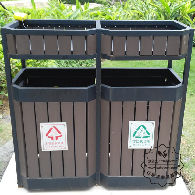 襄阳景区钢木分类垃圾桶是一种采用经防腐防虫处理钢木和钢制框架制作而成的专门盛放垃圾、废弃物的容器,根据摆放的场所,有户外钢木垃圾桶、塑木垃圾桶、实木垃圾桶、仿木垃圾桶,经过除虫、防蚁、防腐、烘干处理后加工成型,桶身钢制结构酸洗磷化表面采用优质静电喷粉处理,形成可靠防护层,使其户外使用具有耐候持久,抗腐蚀不生锈处理户外摆放使其依然耐用。根据款式有单桶和分类桶区别,钢木分类垃圾桶包括可回收、不可回收和有毒物质等分类垃圾的收集。从 2003 年国家出台了《生活垃圾规则条例》。根据国家制定的统一标志,生活垃圾被重新划分为四类,它们分别是可回收垃圾、不可回收垃圾,有害垃圾和其他垃圾。深圳更是垃圾强制分类实施,所以钢木分类垃圾桶在市面上更常见,多个单桶组合摆放也可做钢木多分类垃圾桶使用。