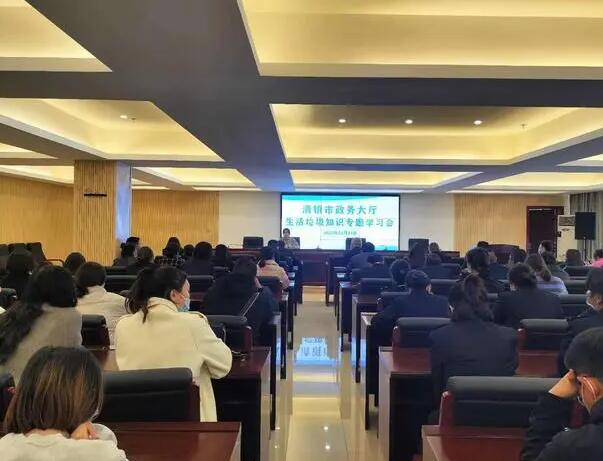 工作中,清镇市政务服务中心安排专人负责开展具体工作,分别组建了知识宣传队和巡查值守队 2 支志愿服务队伍,不定期开展垃圾分类的宣传和监督工作。同时,严格按照《生活垃圾分类指导手册》,在办公室、大厅区域设置可回收物和其他垃圾两分类垃圾桶。在卫生间、母婴室、食堂设置干湿分类垃圾桶。在办公场所外部设置四分类垃圾桶。并建立垃圾处理台账,对垃圾进行分类管理。与贵阳物资回收公司签订有害垃圾处理合同,确保有害垃圾应收尽收且安全处置。此外,对干部职工、物业人员、保洁人员开展教育培训,组织签订《生活垃圾分类承诺书》,下载生活垃圾分类视频彩铃,参与生活垃圾分类每日打卡学习,做好生活垃圾分类知识测试。组织志愿服务队到包保网格开展卫生大扫除、生活垃圾分类培训。与包保网格、村居开展“垃圾分类”主题党日活动,并利用“15 分钟政务服务圈”LED 屏、宣传栏、宣传折页等开展社会宣传。